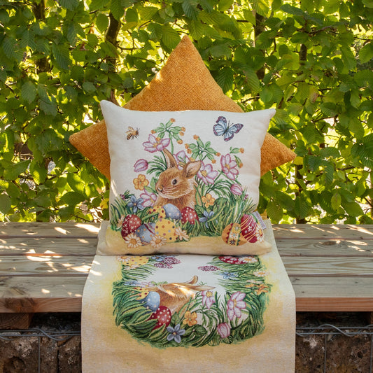 Gobelin Kissenhülle mit Hasen & bunter Blumenwiese - Easter Flowerfield 45x45 cm