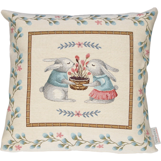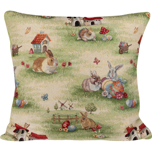 Gobelin Kissenhülle mit Osterhasen Picknick - Rabbit Picknick 50x50 cm