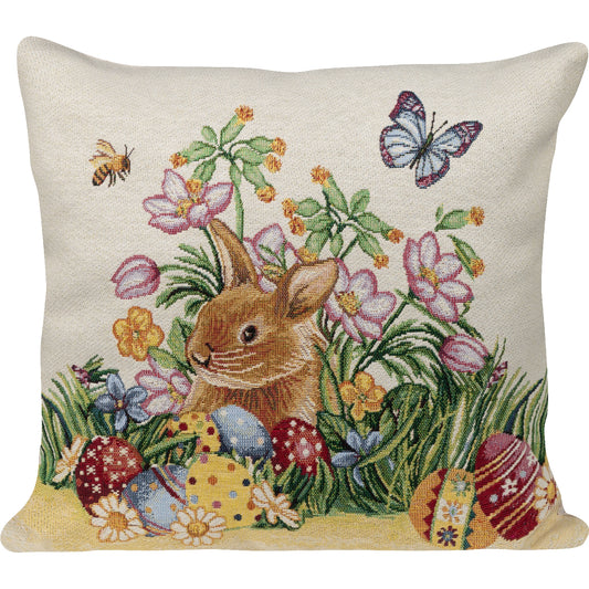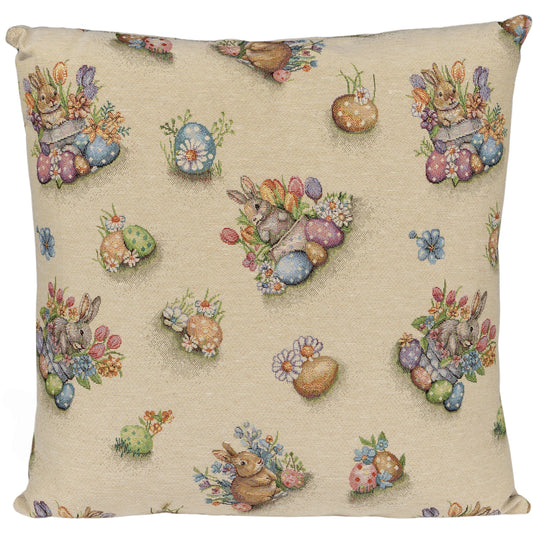 Gobelin Kissenhülle mit Hase im bunten Osternest - Easter Flower Bunny 40x40 cm