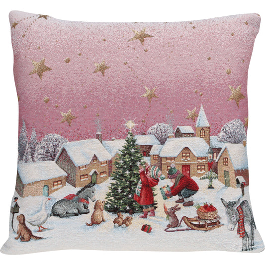Gobelin Kissenhülle mit Magie des Dorfes - Mystic X-Mas Life 45x45 cm