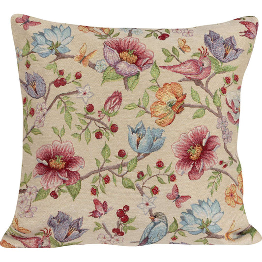 Gobelin Kissenhülle mit Vogel im Blütenparadies - Spring Flower Bird 50x50 cm