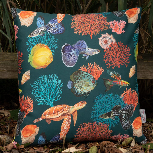 Kissenhülle mit Fischen und Korallen - Nautilus Aquarius - 45x45 cm