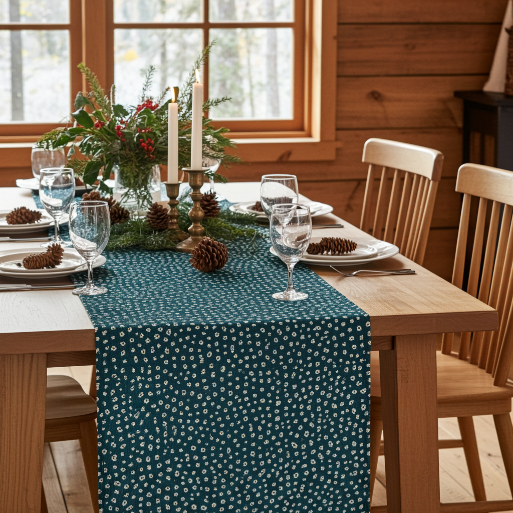 Das Tischband „Poemia Dots“ setzt mit seinem edlen Design einen modernen Akzent auf Ihrem Tisch. Der dunkeltürkise Hintergrund wird von fein gestickten weißen Kreisen und zarten Punkten durchzogen, die dem Tischband eine hochwertige und elegante Ausstrahlung verleihen. Das klare, zeitlose Muster lässt sich vielseitig kombinieren und eignet sich ideal für eine stilvolle Tischdekoration im Alltag und zu besonderen Anlässen.