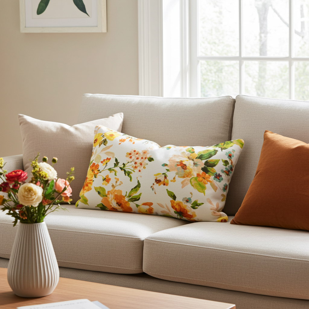 Moderner Akzent! Kissenhülle 40x60 cm "Aquarell Frühlingshauch" mit verspielten Ranken und Blüten in sanftem Aquarell-Stil. Waschbar bei 30°C.