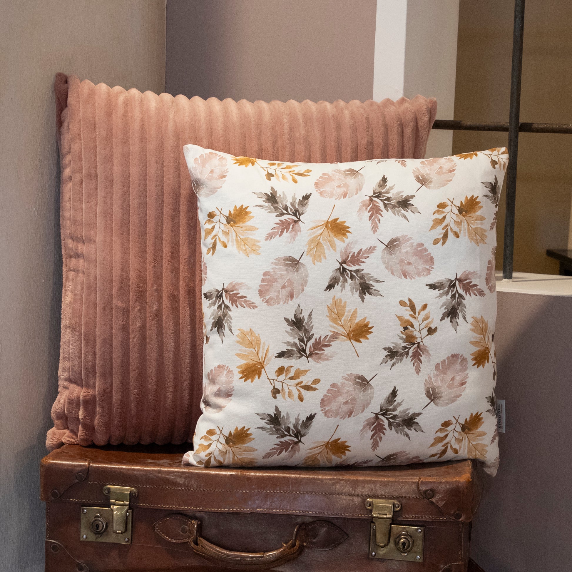 Weiche Kissenhülle in zartem Rosa mit feiner, eleganter Cord-Struktur.