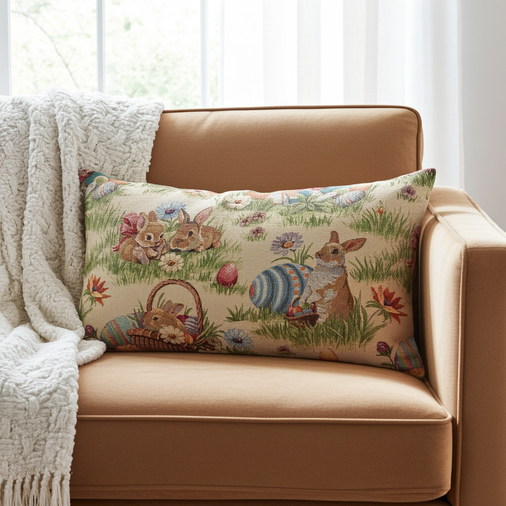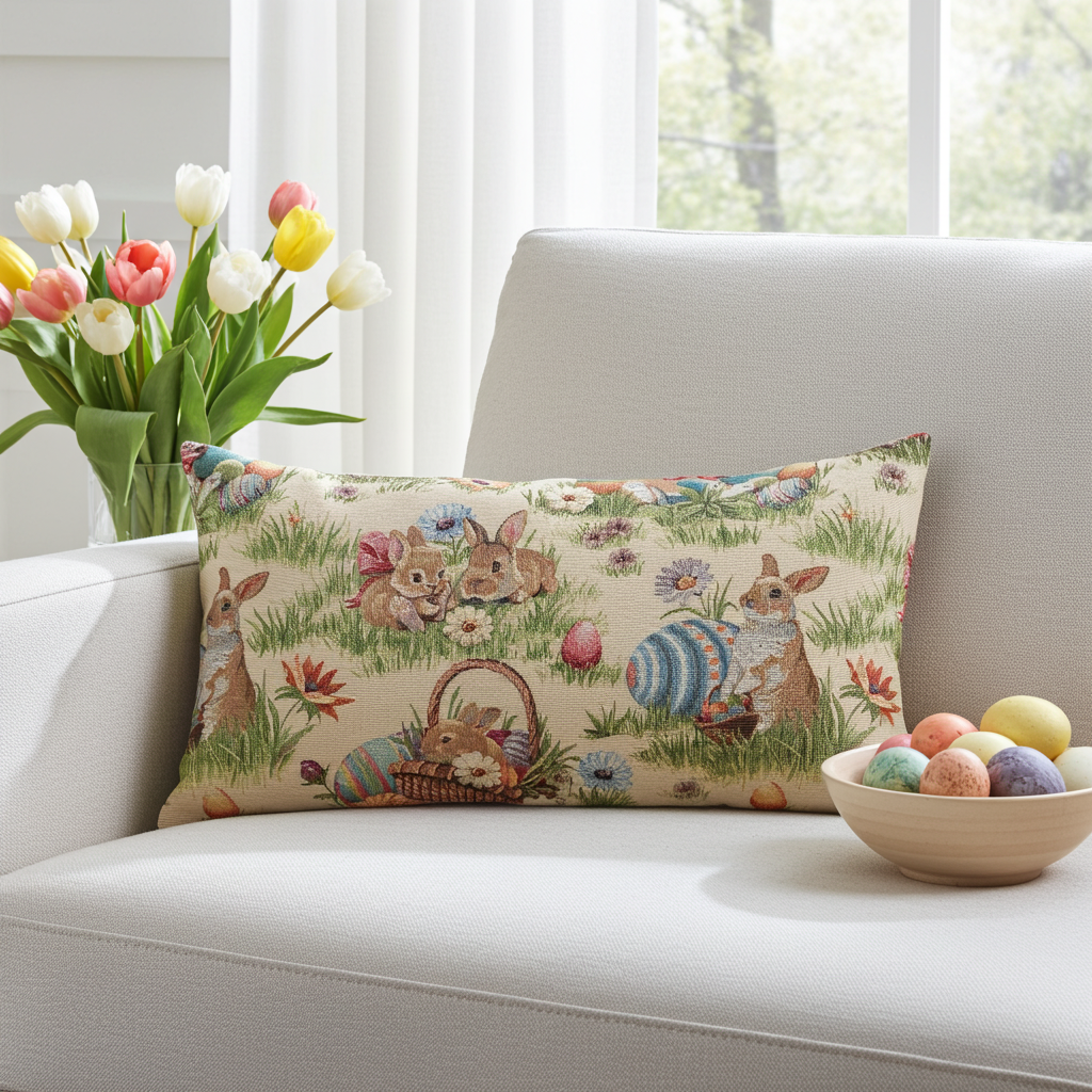 Gobelin Kissenhülle mit Osterhasen Picknick - Rabbit Picknick 30x50 cm
