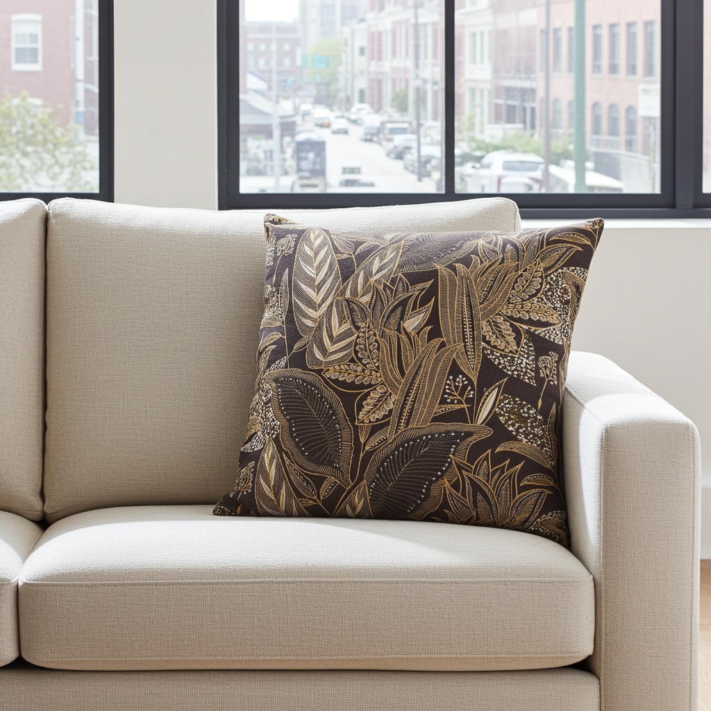 Kissenhülle Savannen Gold - Timbu Leaves dark 40x40 cm