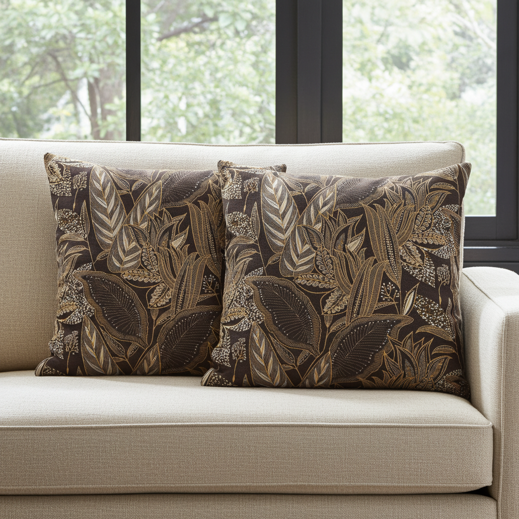 Kissenhülle Savannen Gold - Timbu Leaves dark 50x50 cm