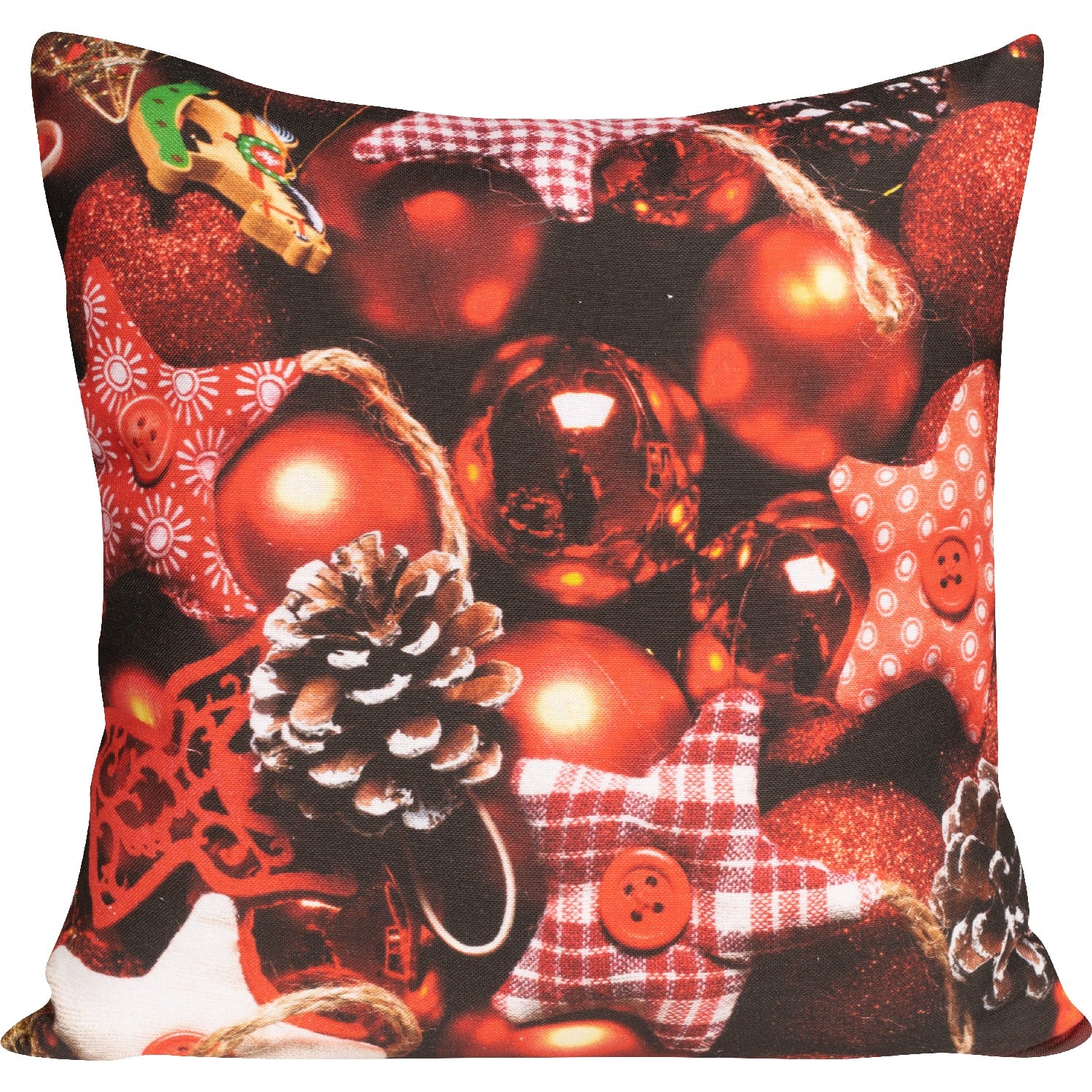 Kissenhülle mit Tannenzapfen, Christbaumkugeln, Sternen und Knöpfen - X-Mas Potpourri - SPRÜGEL