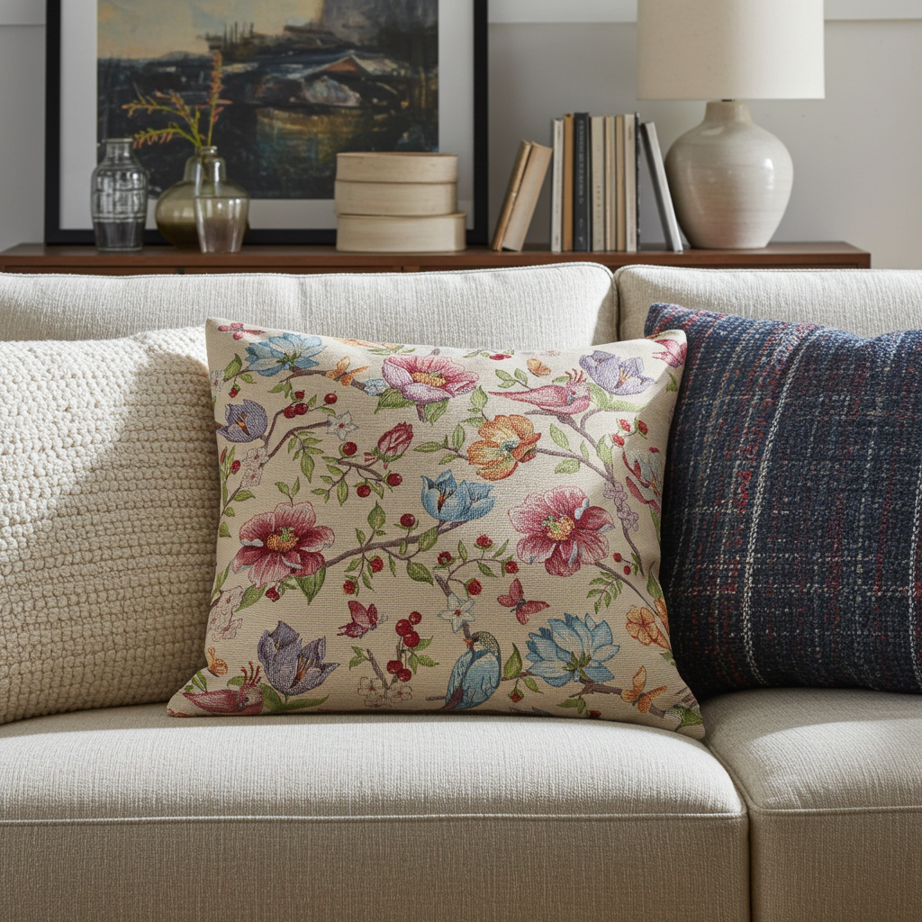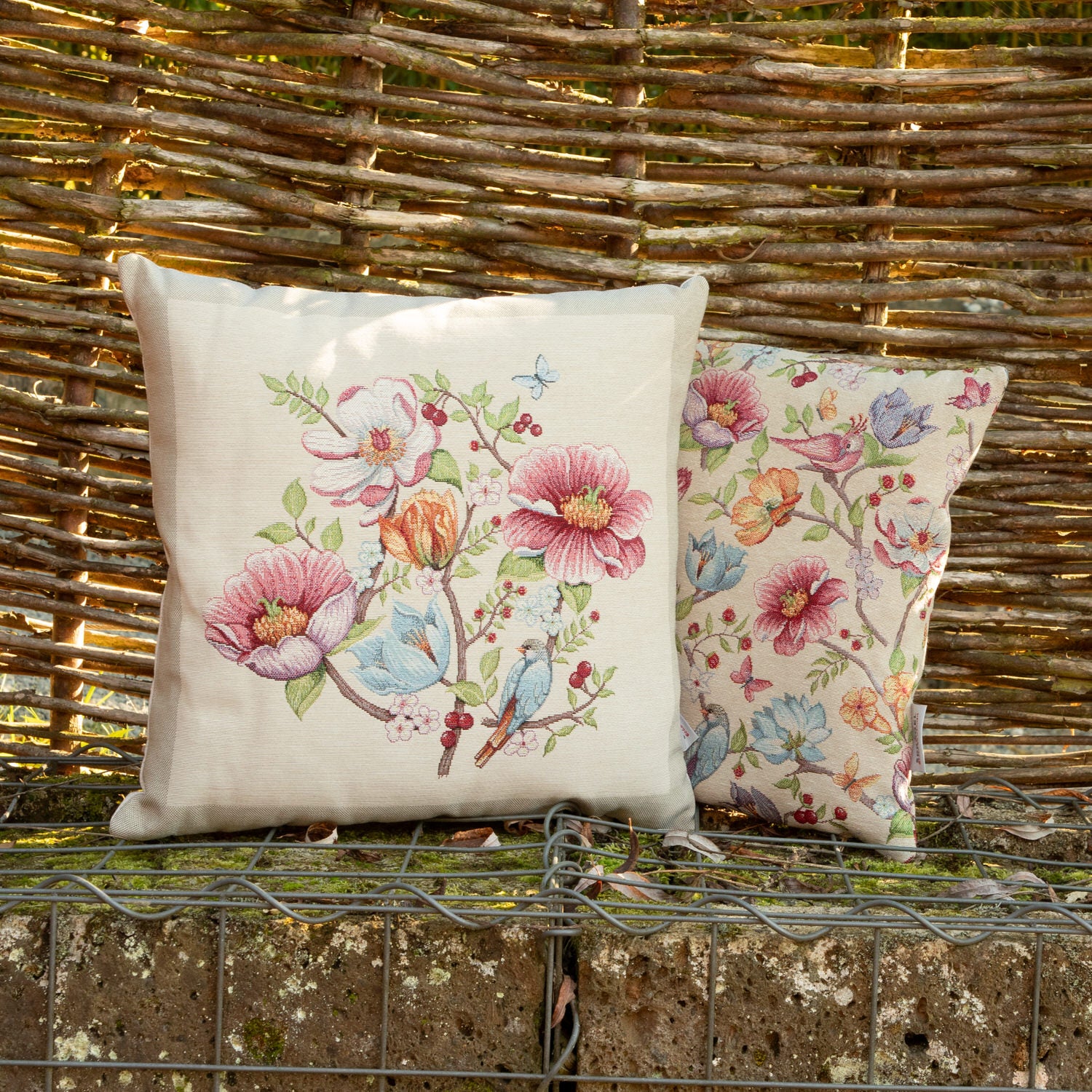 Gobelin Kissenhülle Vogel im Blütenparadies 50x50 cm