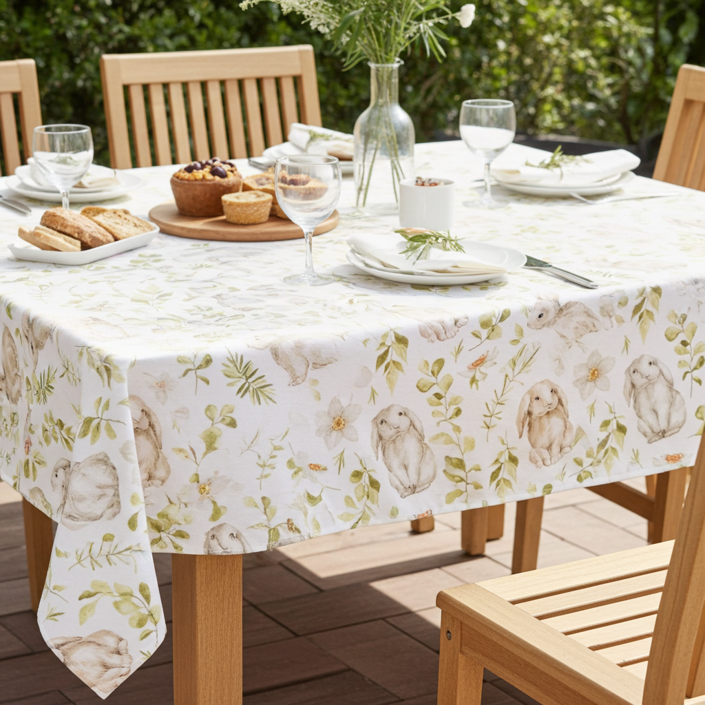 Baumwoll Mitteldecke Hasen & botanischen Zweigen 85x85 cm