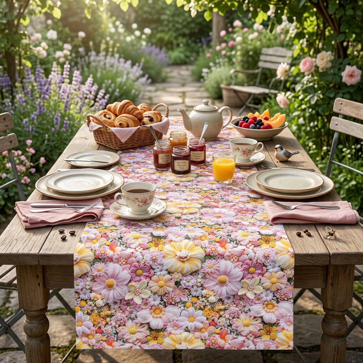 Baumwoll Tischband Blüten Illusion 50x150 cm